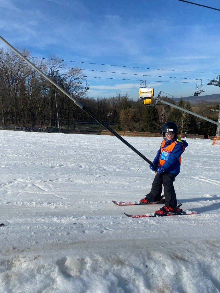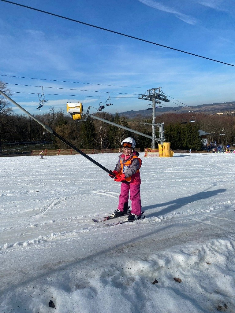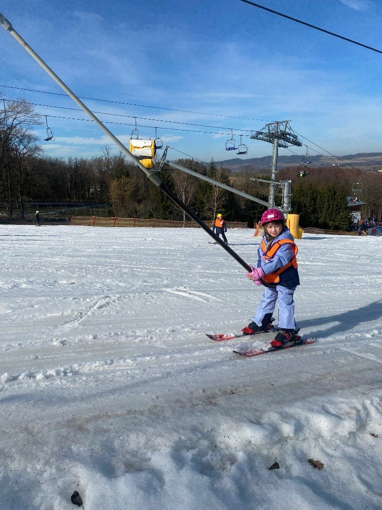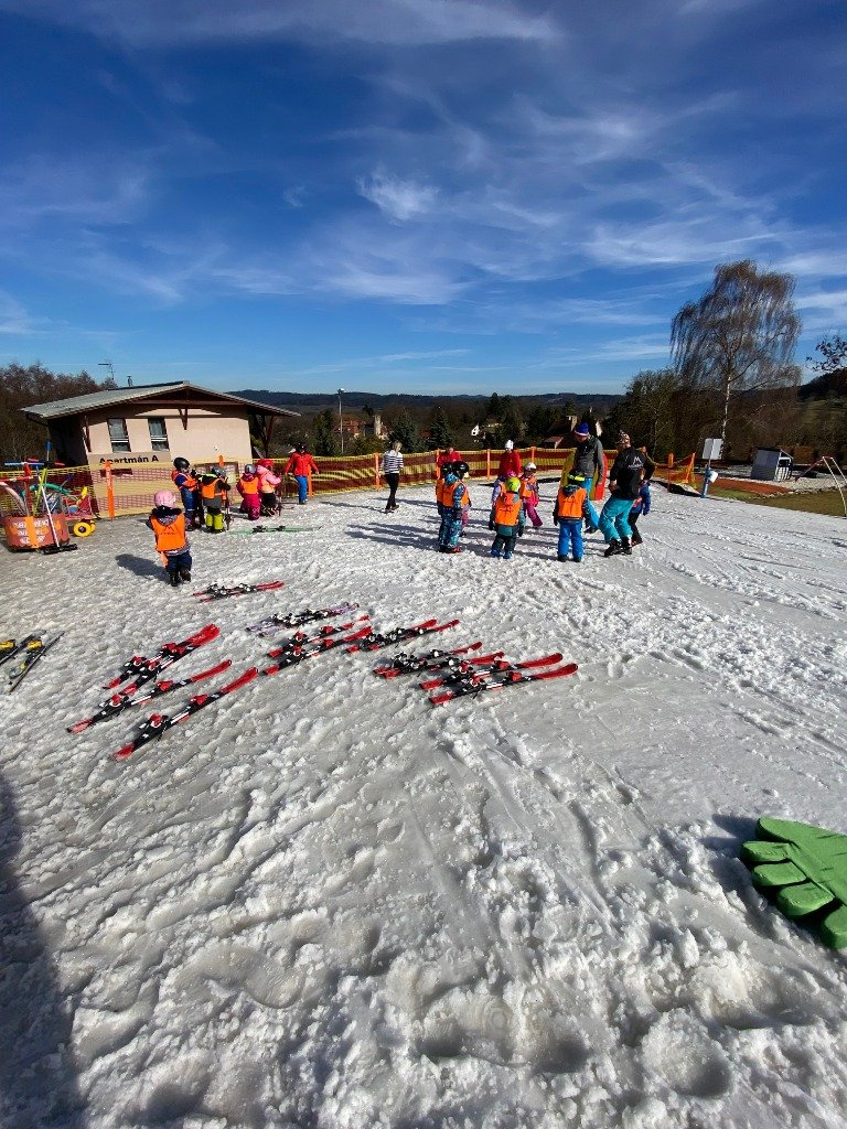 Tento krásný jarní týden naše mateřská škola společně s MŠ a ZŠ Želeč vyrazila na lyžařský kurz na Monínci. Sice nám v pondělí moc nepřálo, ale ostatní slunečné dny tento jeden den plně vynahradily. Někteří stáli na lyžích poprvé v životě a dělali každým dnem veliké pokroky. Do konce týdne každý z "nováčků" zvládl základy lyžování i jízdu na pomě. Někteří, už zdatnější lyžaři, bez problémů jezdili celý velký kopec a využívali jak lanovky tak kotvy. Ve čtvrtek bylo do kurzu zařazeno i hledání pokladu - každý si našel svou sladkou odměnu. V pátek konečně děti mohly ukázat své dovednosti rodičům při závodech na lyžích a na závěr kurzu získaly diplom a foto s maskotem Monym.