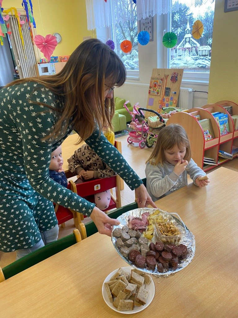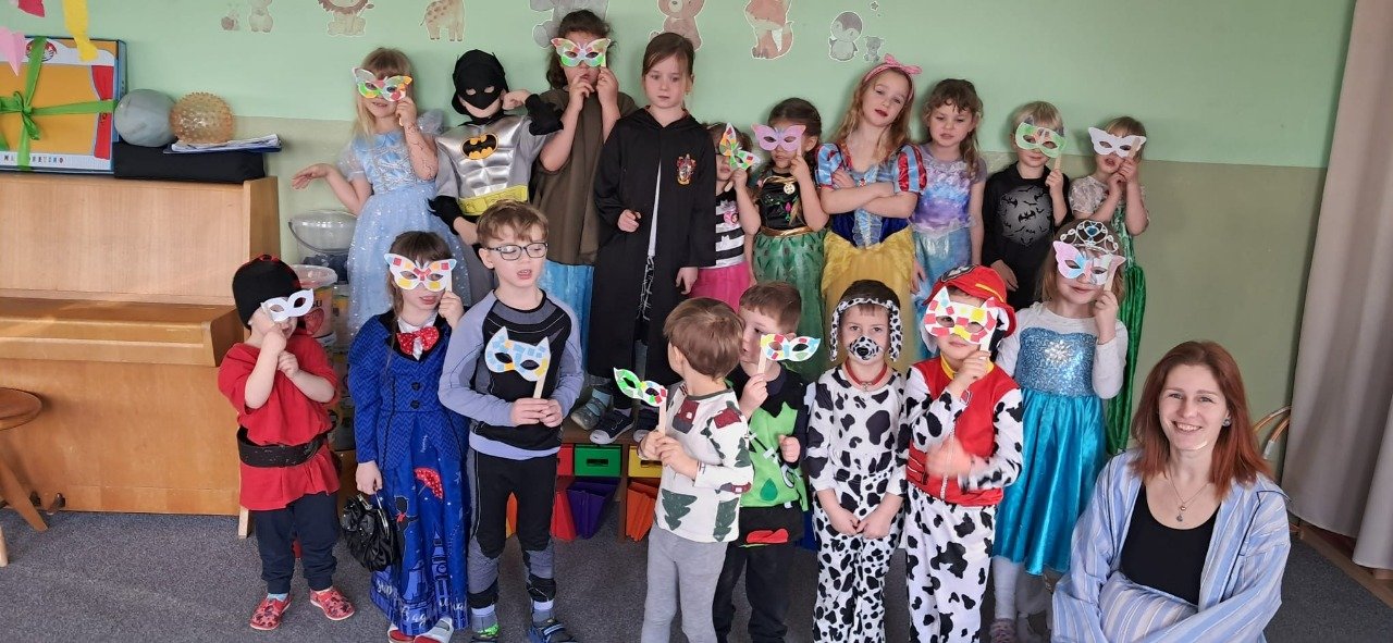Tento týden se celý nesl v duchu karnevalu a masopustu. Po celou dobu jsme si povídali o tradicích spojených s masopustem, navštívil nás řezník Krkovička, který přinesl dětem ochutnat různé dobroty a na závěr týdne se celá naše školka proměnila v různorodé postavy. Nechyběla oblíbená Elsa s dalšími princeznami, pejsci, trpaslík nebo třeba Mary Poppins. Pani učitelka si připravila krásný program a skvělé občerstení pro všechny děti.