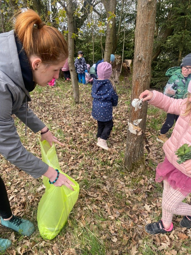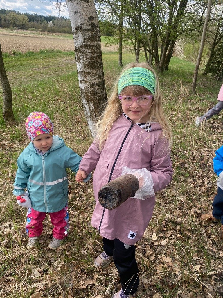 Teorii o ochraně přírody jsme okamžitě převedli do praxe. Vybaveni rukavicemi a pytli jsme se vydali na průzkum okolí školky. Podařilo se nám sesbírat několik pytlů odpadu, který do přírody nepatří. Následně jsme si přímo v terénu i ve školce procvičili třídění odpadu.