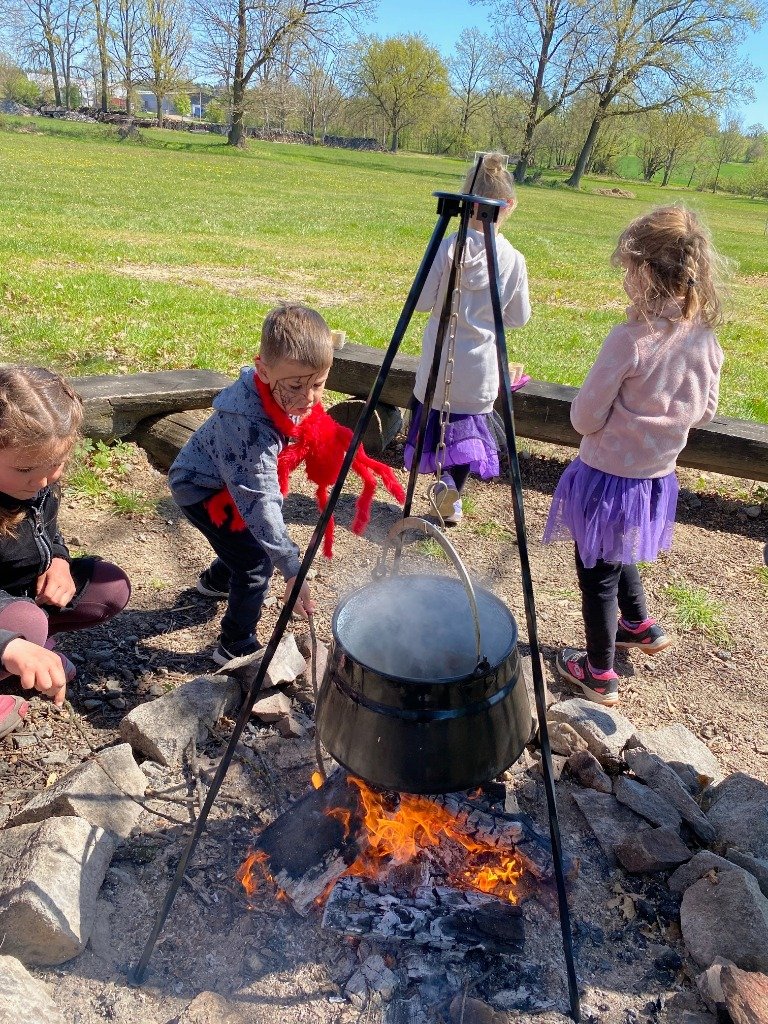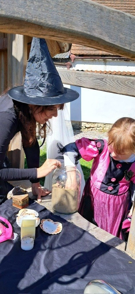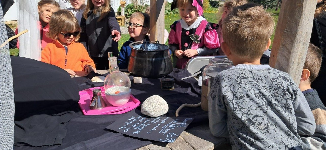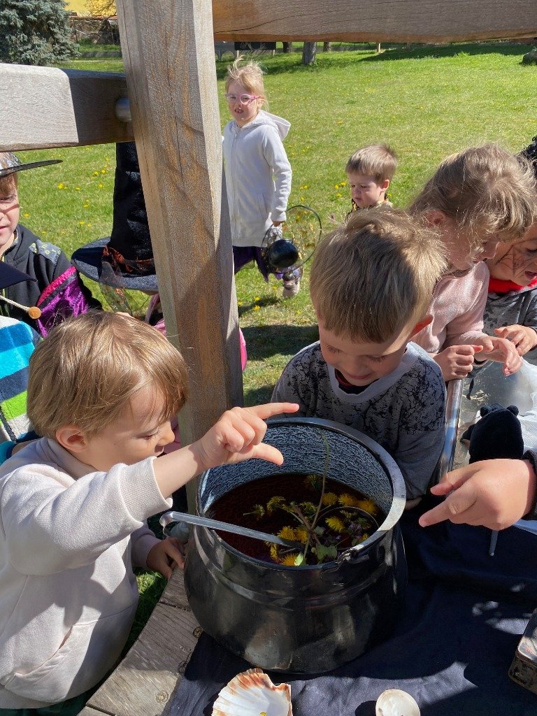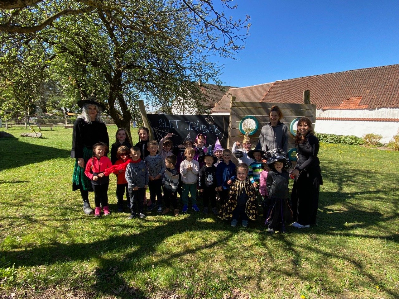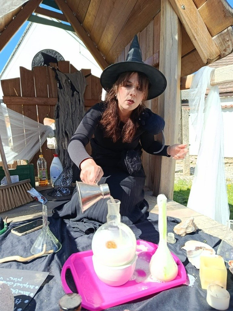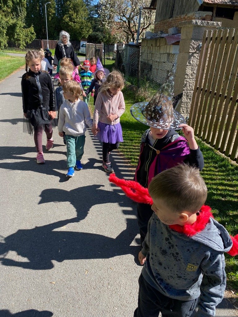 Předposlední dubnové dopoledne se naše mateřská škola proměnila v tajuplnou čarodějnickou školku. Místo dětí do tříd dorazili malí černokněžníci, ježibaby a ježidědci.Náš program odstartoval slavnostním průvodem po obci v kostýmech. Největším překvapením byla návštěva Vrchní čarodějnice. Ta byla sice mocná, ale také pořádně roztržitá! Pořád něco hledala a pletla si zaříkadla, což děti nesmírně bavilo. Nakonec se jí ale přece jen podařilo předvést dechberoucí pokusy. Když z jejích zkumavek začala stoupat barevná pěna a ozvalo se tajuplné syčení, oči dětí zářily úžasem. Pro děti si připravila i zkoušku odvahy, kdy museli vylovit drobnou dobrotu z pavoučího úkrytu. Následně se děti s chutí pustily do přípravy magického lektvaru. Pod bedlivým dohledem míchaly tajné přísady – čerstvé bylinky a pár kapek „dračí krve“. Vůně máty (pro lepší dech), hluchavky (pro bystření sluchu), sedmikrásek (na krásu) a pampelišek (pro lepší náladu) se nesla široko daleko a každý malý kouzelník mohl ochutnat, jak chutná pravá čarodějná síla. To vše jsme si uvařili v pořádném kotlíku na ohni a teď budeme jen doufat, že náš lektvar všem zabere :)