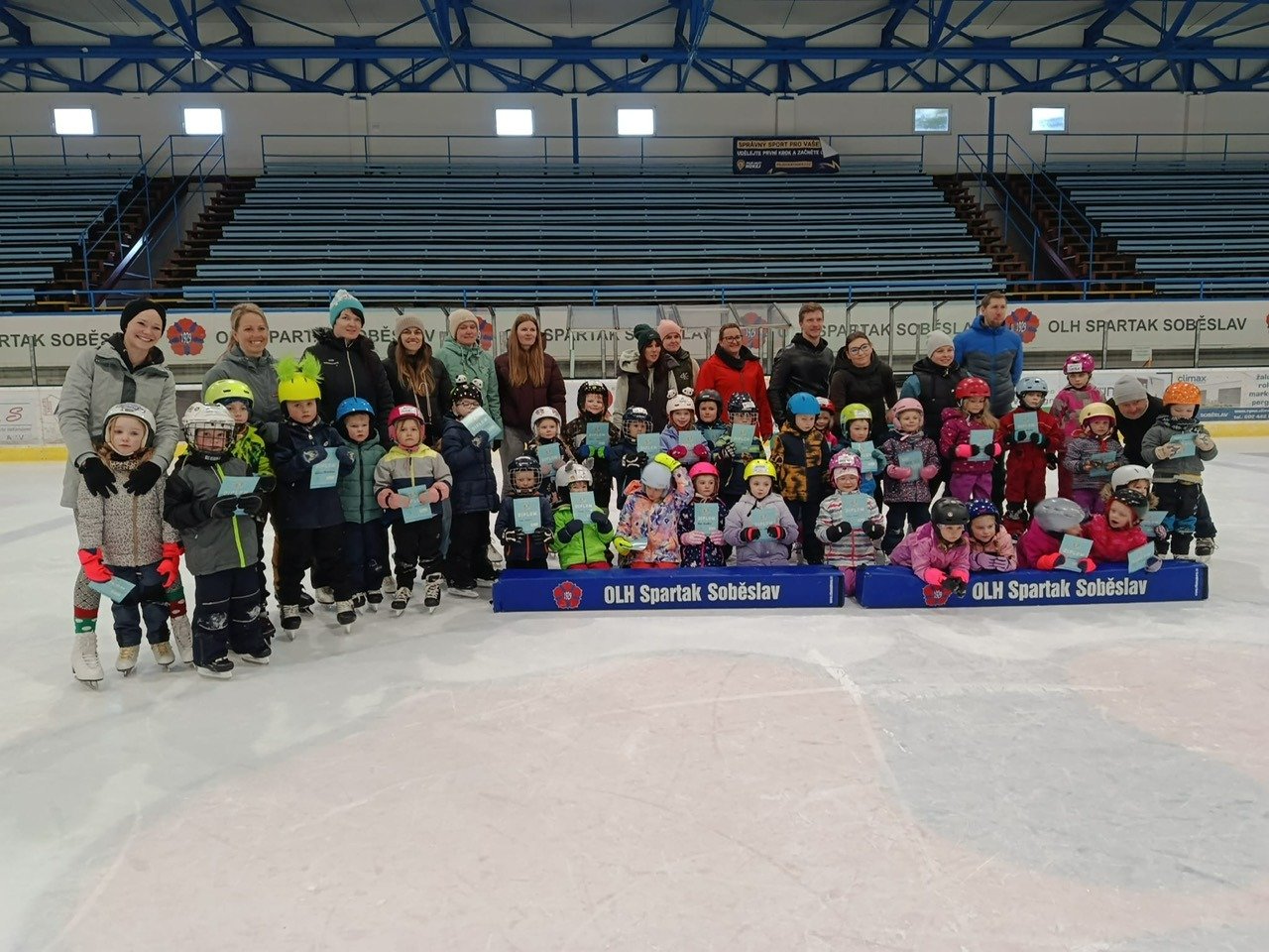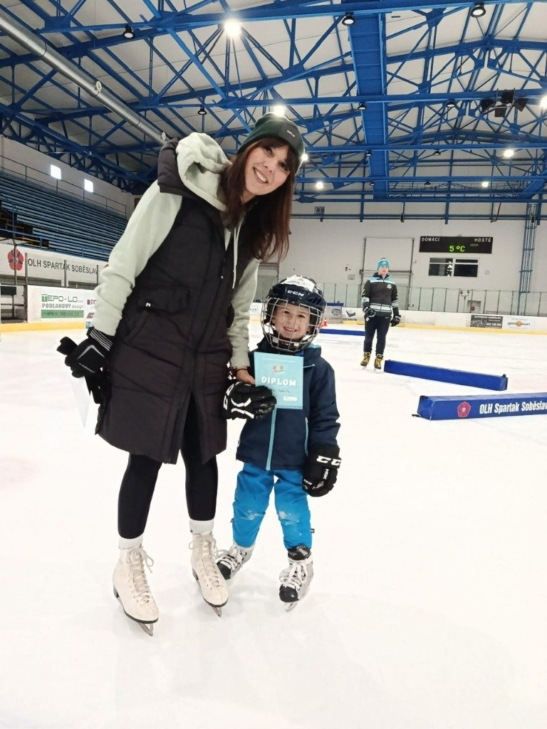 V úterý dopoledne nás čekal poslední kurz Děti do bruslí. Po deseti lekcích každý zvládl základy bruslení a své dovednosti tak děti mohly ukázat pyšným rodičům. Přijelo se podívat spousta rodičů a někteří z nich si obuli brusle a šli si vyzkoušet různé slalomy a hry s dětmi přímo na ledě. Na závěr kurzu každý dostal zasloužený diplom.