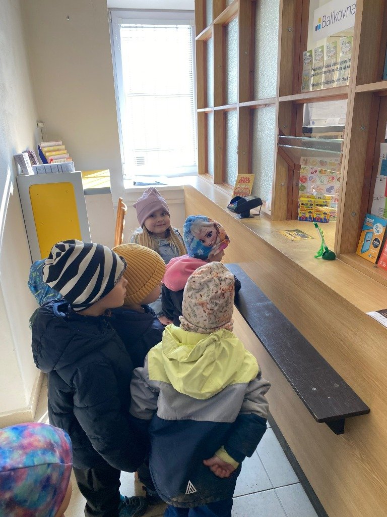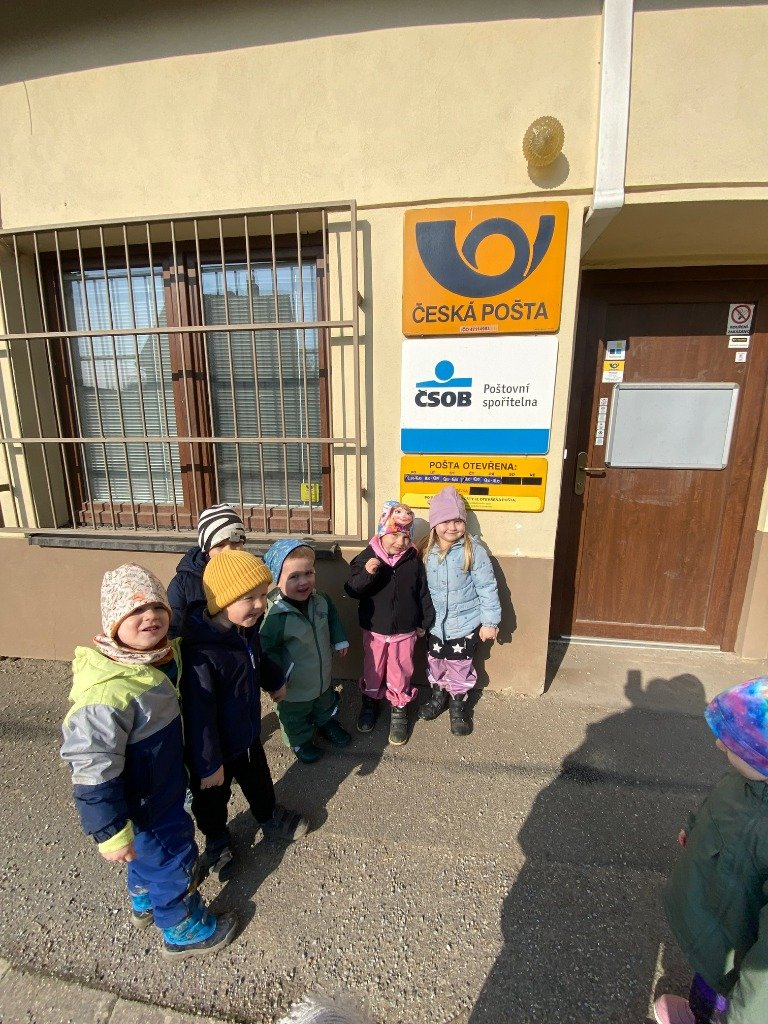 Nechyběla návštěva místní pošty. Zde jsme si koupili pohled a zaslali jsme pozdrav dětem do MŠ Želeč. Měli jsme tak možnost vidět práci pana poštmistra.