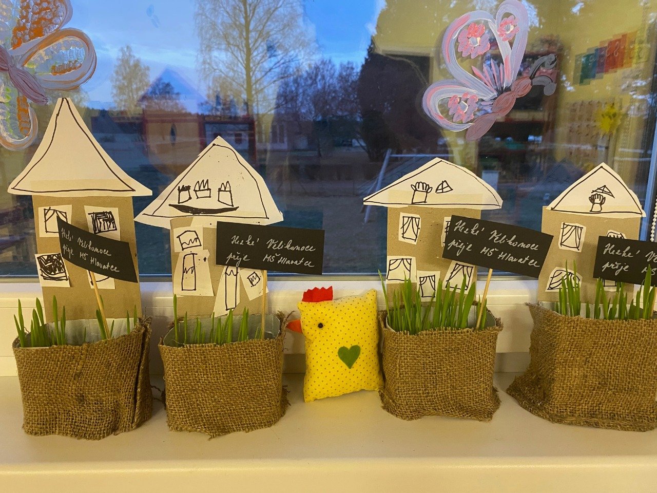 Jako drobnou pozornost jsme si letos s dětmi připravily domečky s osením z recyklovaných krabiček.