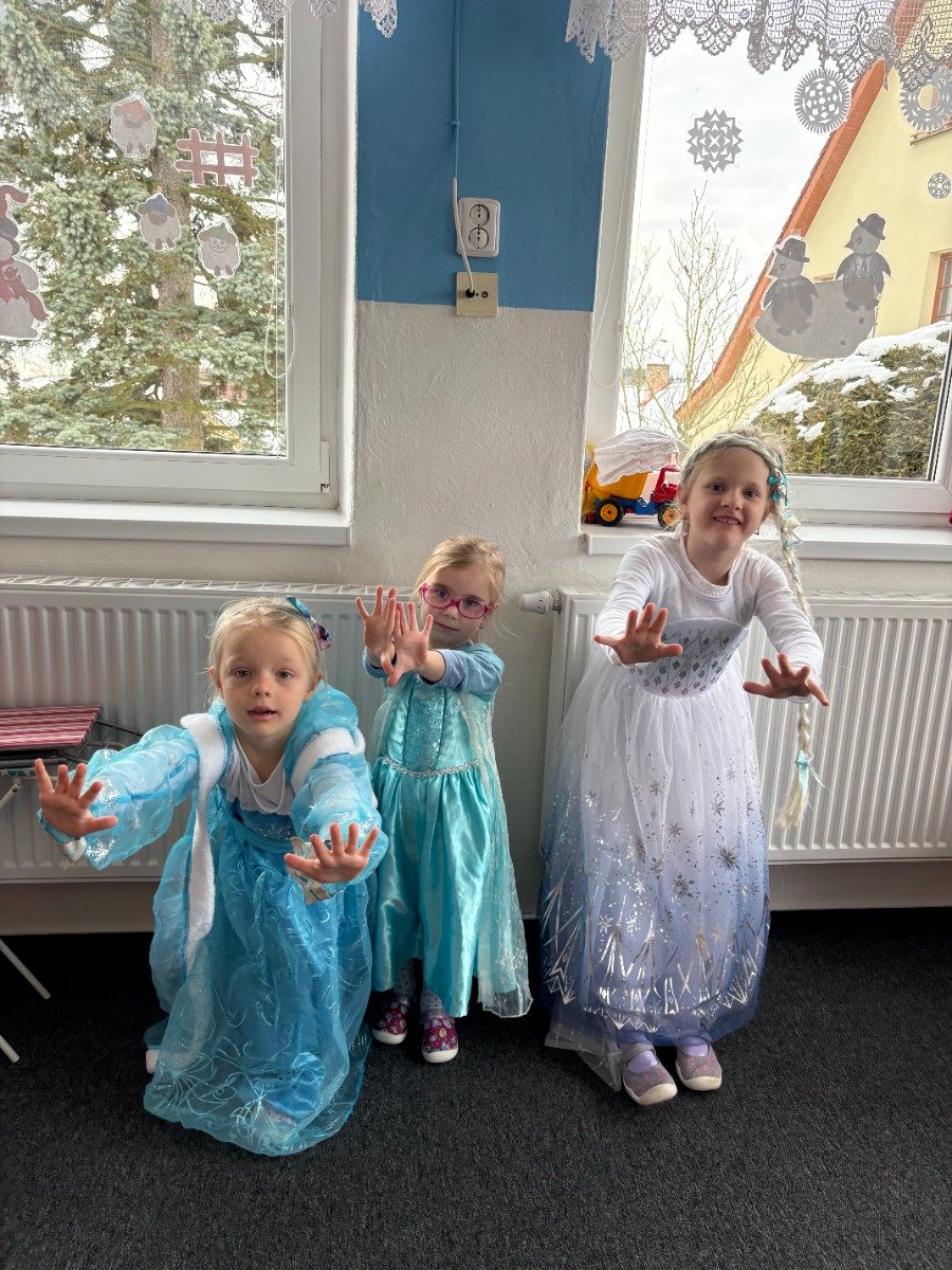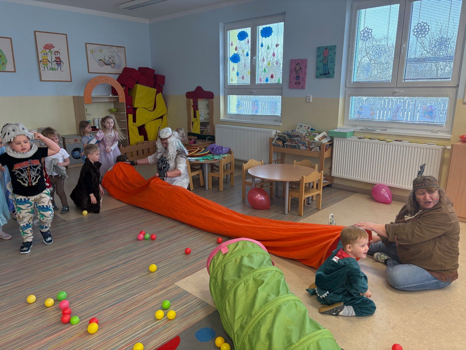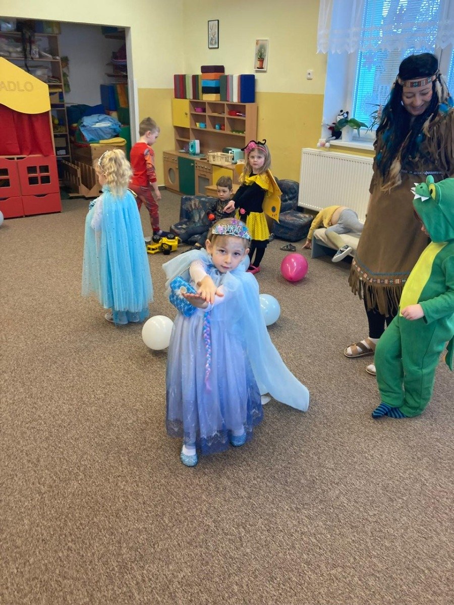 Ve středu 18.2. jsme se potkali ve školce převlečeni do kostýmů a masek. Paní učitelky vítaly děti v indiánských kostýmech a s dětmi začaly maškarní rej od brzkého rána. Nejprve jsme se ve třídách představili, co představujeme za pohádkové postavy, či zvířátka, zasoutěžili si a zazpívali. Po svačince se třída Motýlků a Broučků spojila. Měli jsme společnou discotéku, hrátky s padákem, balońky a míčkami, ale děti nejvíce bavilo prolézaní nekonečných tunelem. Třída Včeliček měla na pořadu dne karaoke a módní přehlídku či tanec ve dvou s balónkem uprostřed. Všichni jsme si karnevalové řádění moc užili a těšíme se na příští rok.