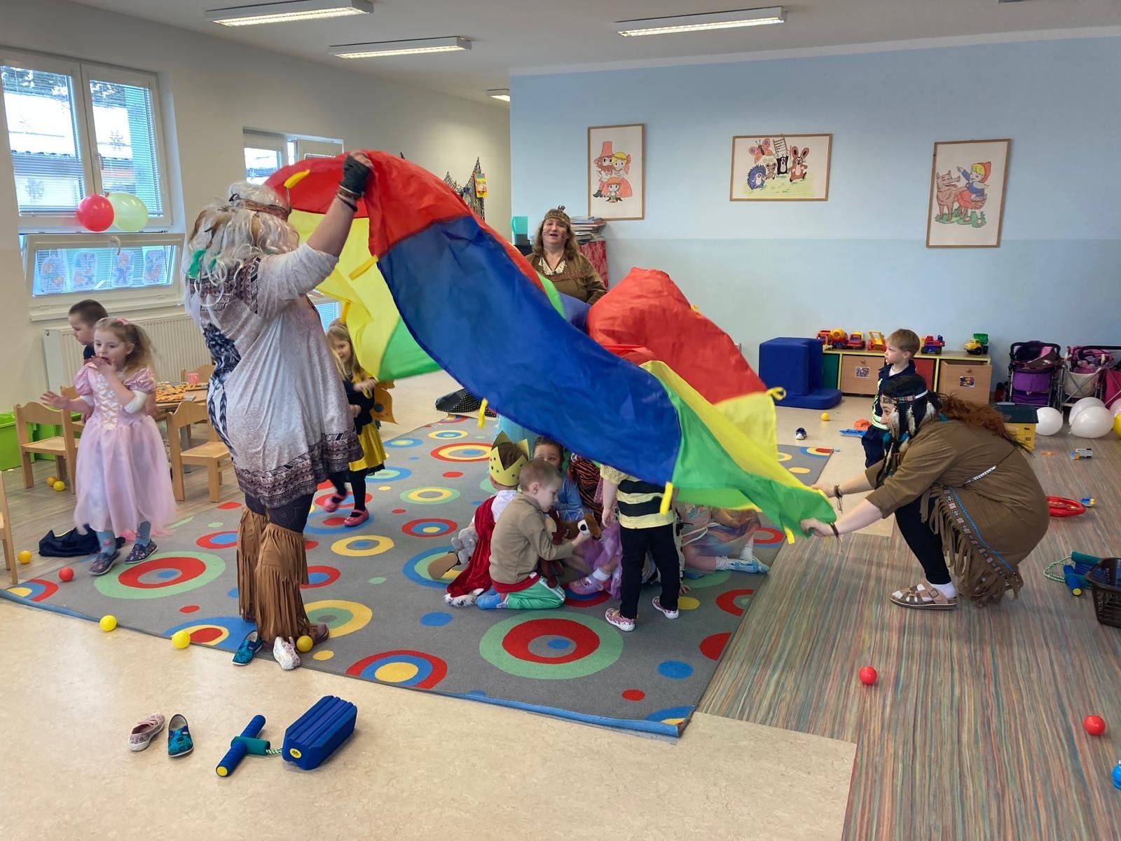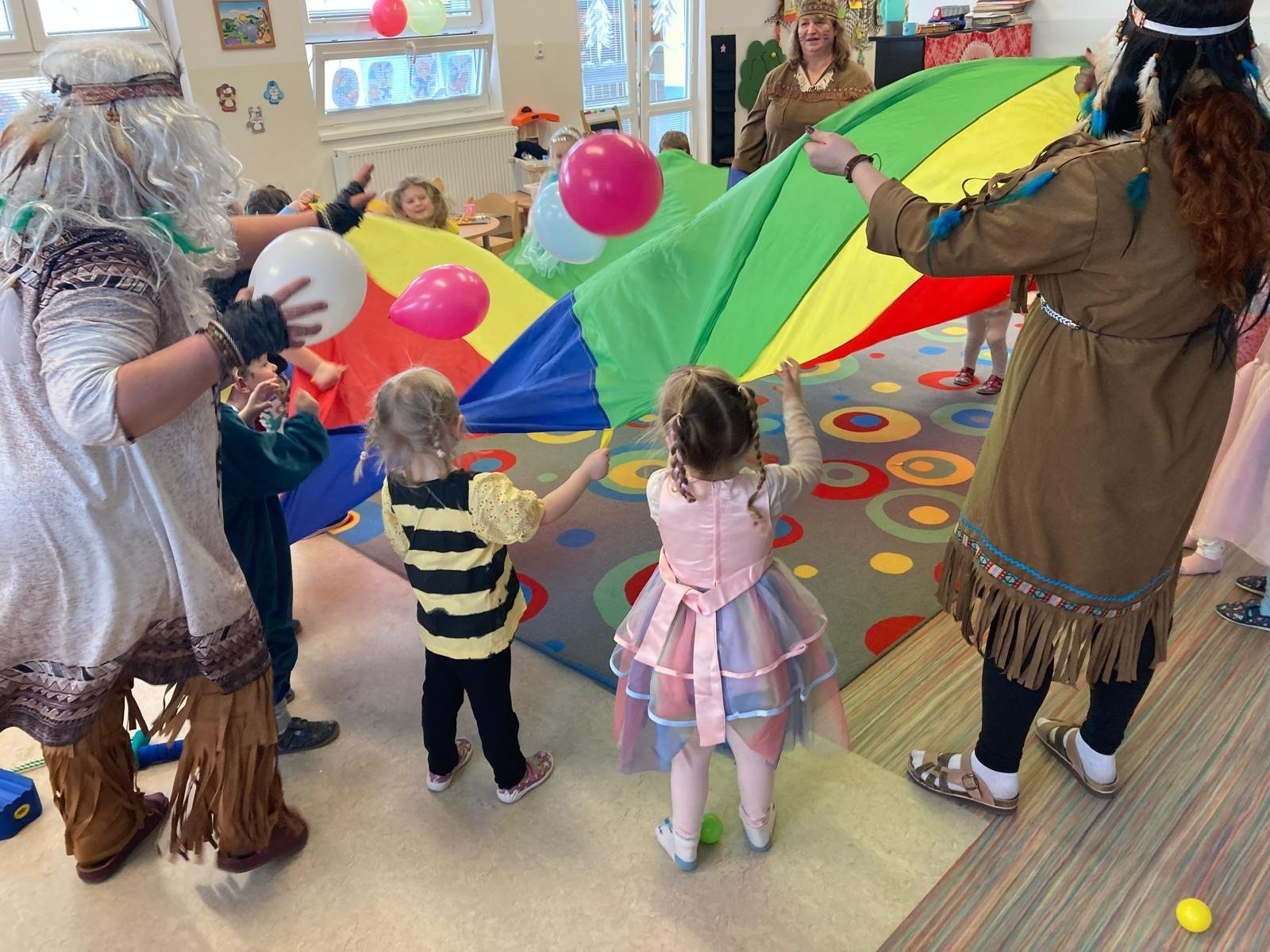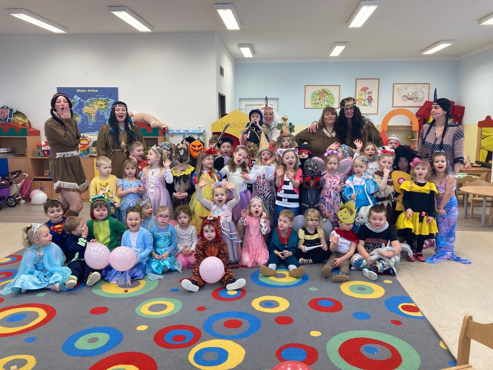 Ve středu 18.2. jsme se potkali ve školce převlečeni do kostýmů a masek. Paní učitelky vítaly děti v indiánských kostýmech a s dětmi začaly maškarní rej od brzkého rána. Nejprve jsme se ve třídách představili, co představujeme za pohádkové postavy, či zvířátka, zasoutěžili si a zazpívali. Po svačince se třída Motýlků a Broučků spojila. Měli jsme společnou discotéku, hrátky s padákem, balońky a míčkami, ale děti nejvíce bavilo prolézaní nekonečných tunelem. Třída Včeliček měla na pořadu dne karaoke a módní přehlídku či tanec ve dvou s balónkem uprostřed. Všichni jsme si karnevalové řádění moc užili a těšíme se na příští rok.