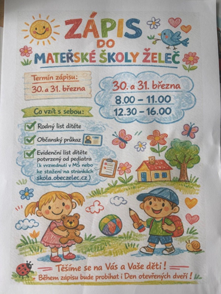 ZÁPIS DO MATEŘSKÉ ŠKOLY ŽELEČ